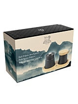 Schwarze gusseiserne Pfeffermhle Bali mit Salzschlchen als Geschenkbox