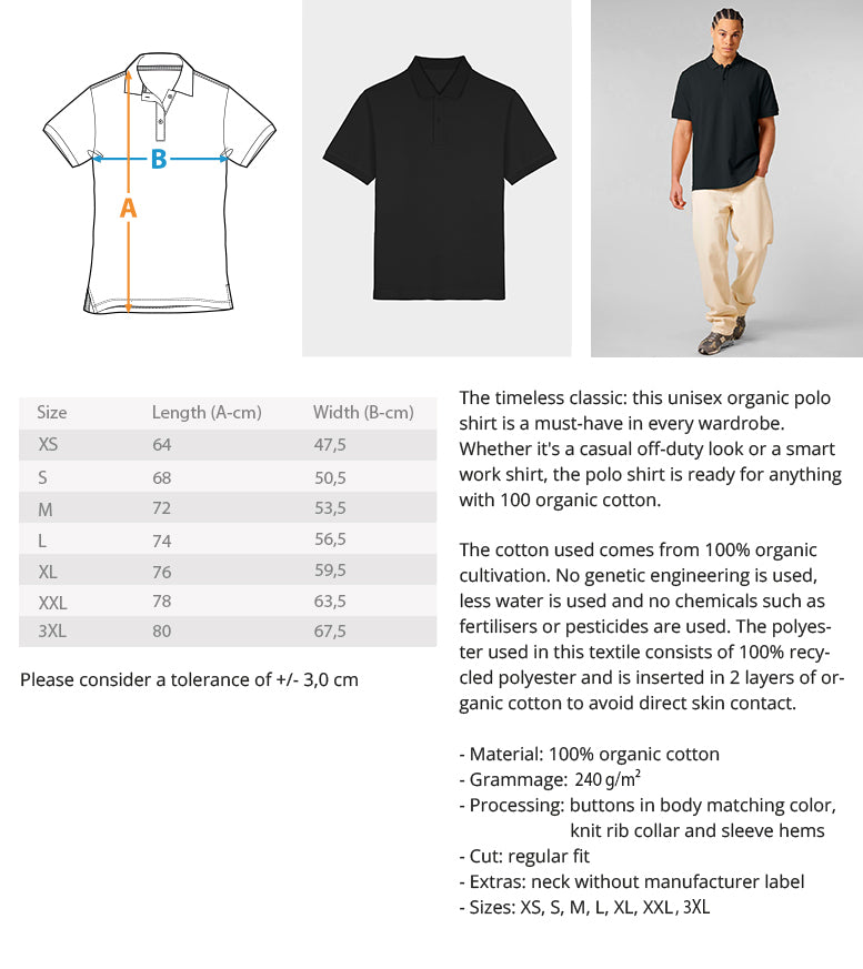 Dieses Organic Polo-Shirt überzeugt mit seiner soften Qualität und bietet optimalen Tragekomfort bei 100% Bio-Baumwolle. Nicht nur gut für dich, sondern auch für die Umwelt. Das Organic Polo-Shirt eignet sich außerdem hervorragend als Geschenk für deine Liebsten, egal ob zum Vatertag, Muttertag, Weihnachten oder Geburtstag. Mit diesem einzigartigen Shirt sticht dein Geschenk ganz besonders heraus. Unisex Organic Polo-Shirt 2.0 ST/ST mit Stick