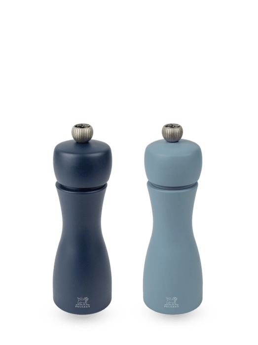 Das ikonische Duo Tahiti mit seiner sehr harmonischen, taillierten Silhouette erstrahlt in ultratrendigen, sanften und modernen Blautönen. Anhand der helleren Nuance lässt sich die Salzmühle leicht von der dunkleren Pfeffermühle unterscheiden. Dieses Duo wird auf Ihrem Tisch für Begeisterung sorgen. Beide Mühlen des Tahiti-Duos sind mit einem Peugeot-Mahlwerk aus Stahl ausgestattet, auf das in Deutschland eine 25-jährige Garantie gewährt wird.